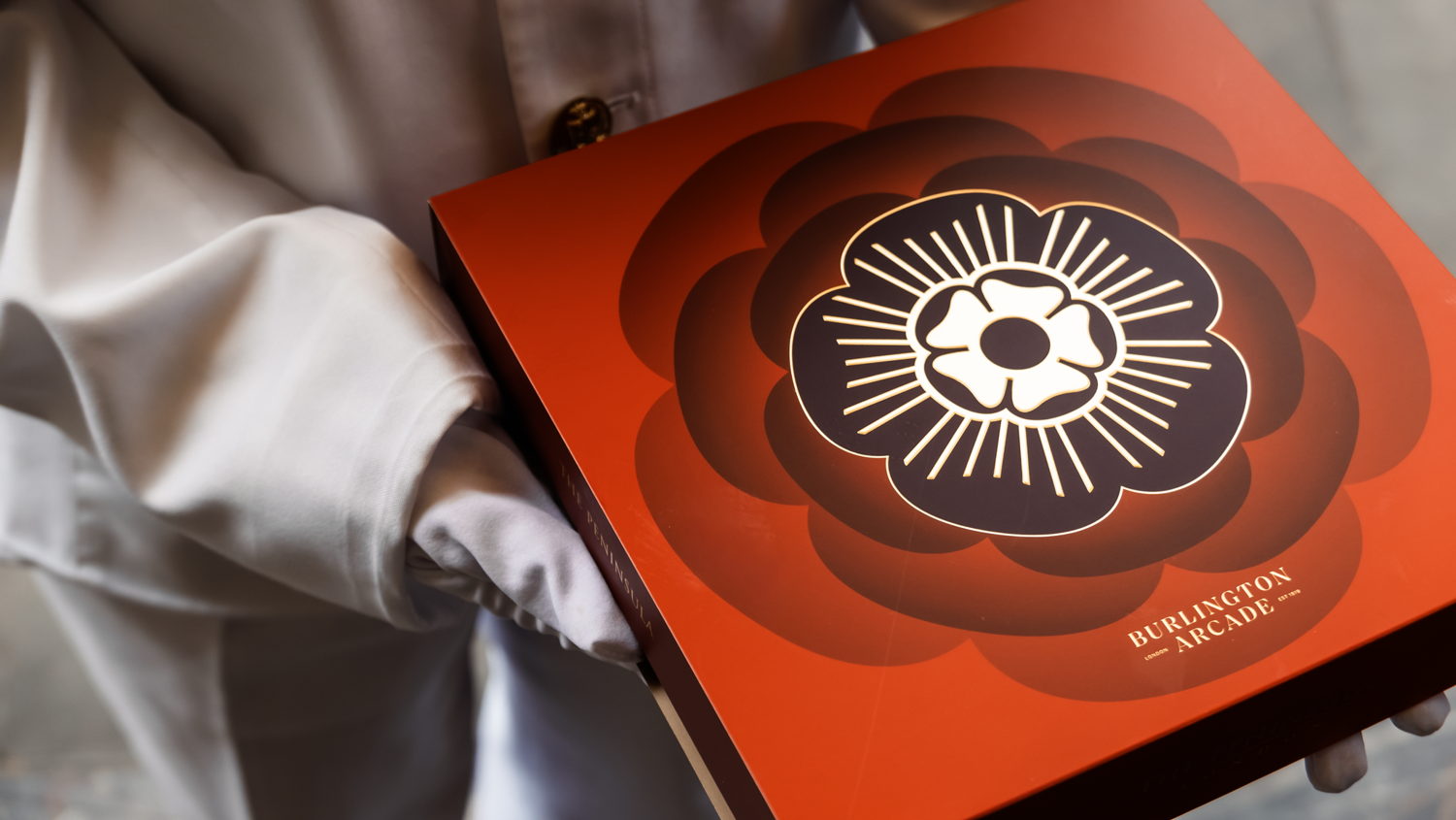 Cada caja de regalo incluirá los signature Mini Mooncakes de Crema Pastelera de The Peninsula. Presentados en una caja de un rojo intenso adornada con la roseta dorada de Burlington Arcade, el diseño refleja el poderoso simbolismo del color en la cultura china y rinde homenaje al legado de la arcada comercial más antigua de Gran Bretaña. Cada mooncake también estará individualmente estampado con la roseta de Burlington Arcade.