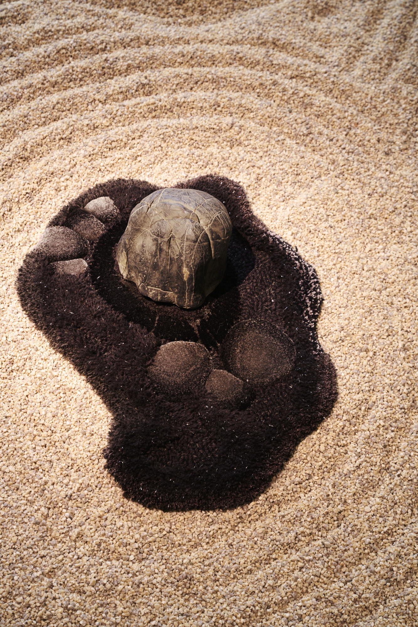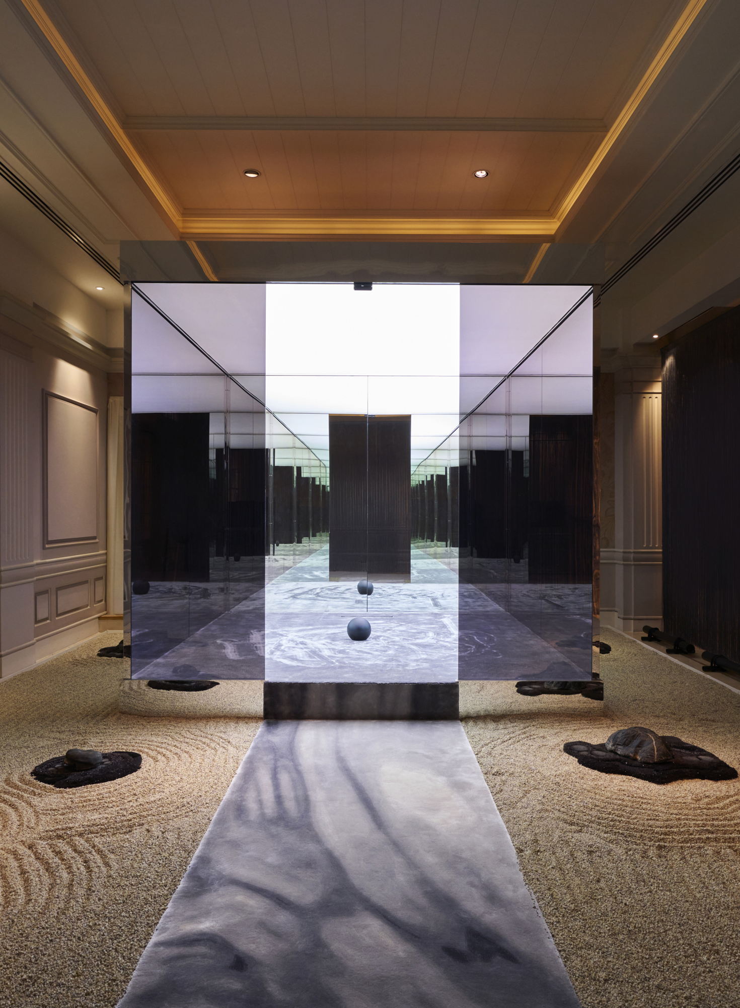 En The Verandah, el artista de nuevos medios Chris Cheung (h0nh1m) (Hong Kong, China) presenta The Flow Pavilion, una instalación inmersiva creada en colaboración con Tai Ping. Una estructura de espejo unidireccional, modelada a partir de una casa de té contemporánea, es la pieza central de un Jardín Zen que ocupa el espacio del café. Los visitantes están invitados a experimentar el 'Flow State', un viaje meditativo de auto-conexión y tranquilidad, observando una esfera cinética deslizarse sobre una alfombra de seda tejida a mano, creando patrones que recuerdan los diseños de un Jardín Zen contemporáneo. Este movimiento hipnótico está impulsado por los patrones de ondas cerebrales grabados del artista durante la meditación, combinando prácticas antiguas de atención plena con tecnología moderna.