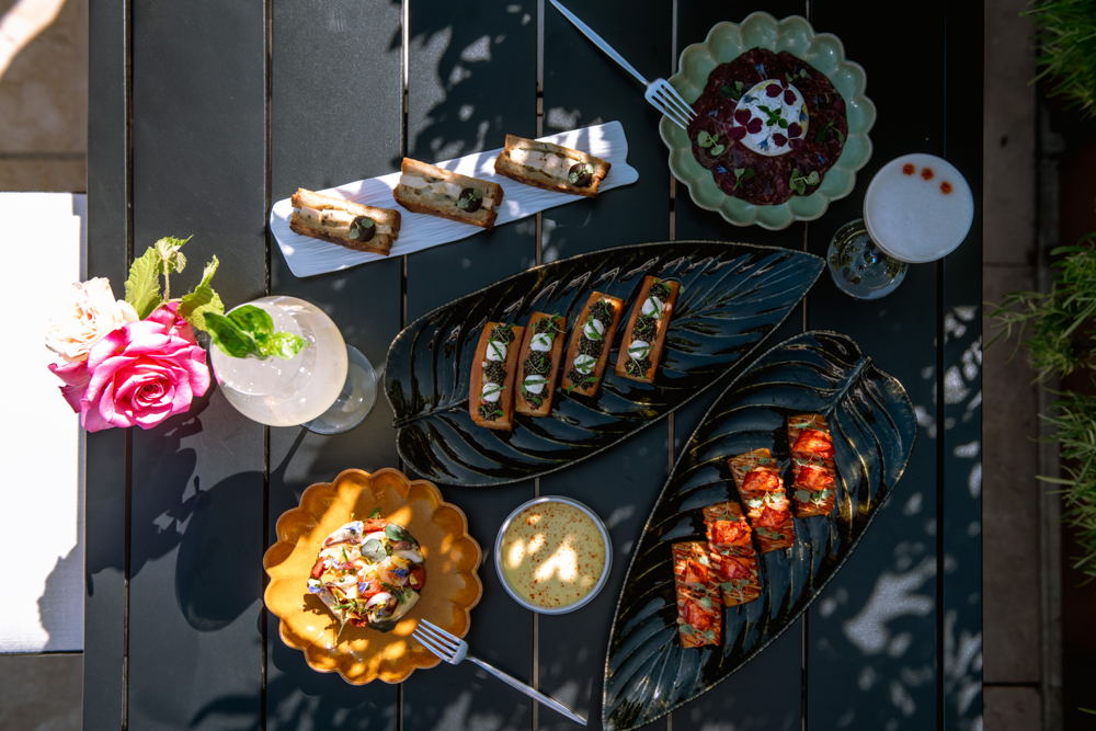 El menú de bocados pequeños incluye rollos de langosta con estragón, caviar con crema de mar, tártar de res con burrata y lubina con salsa macha.