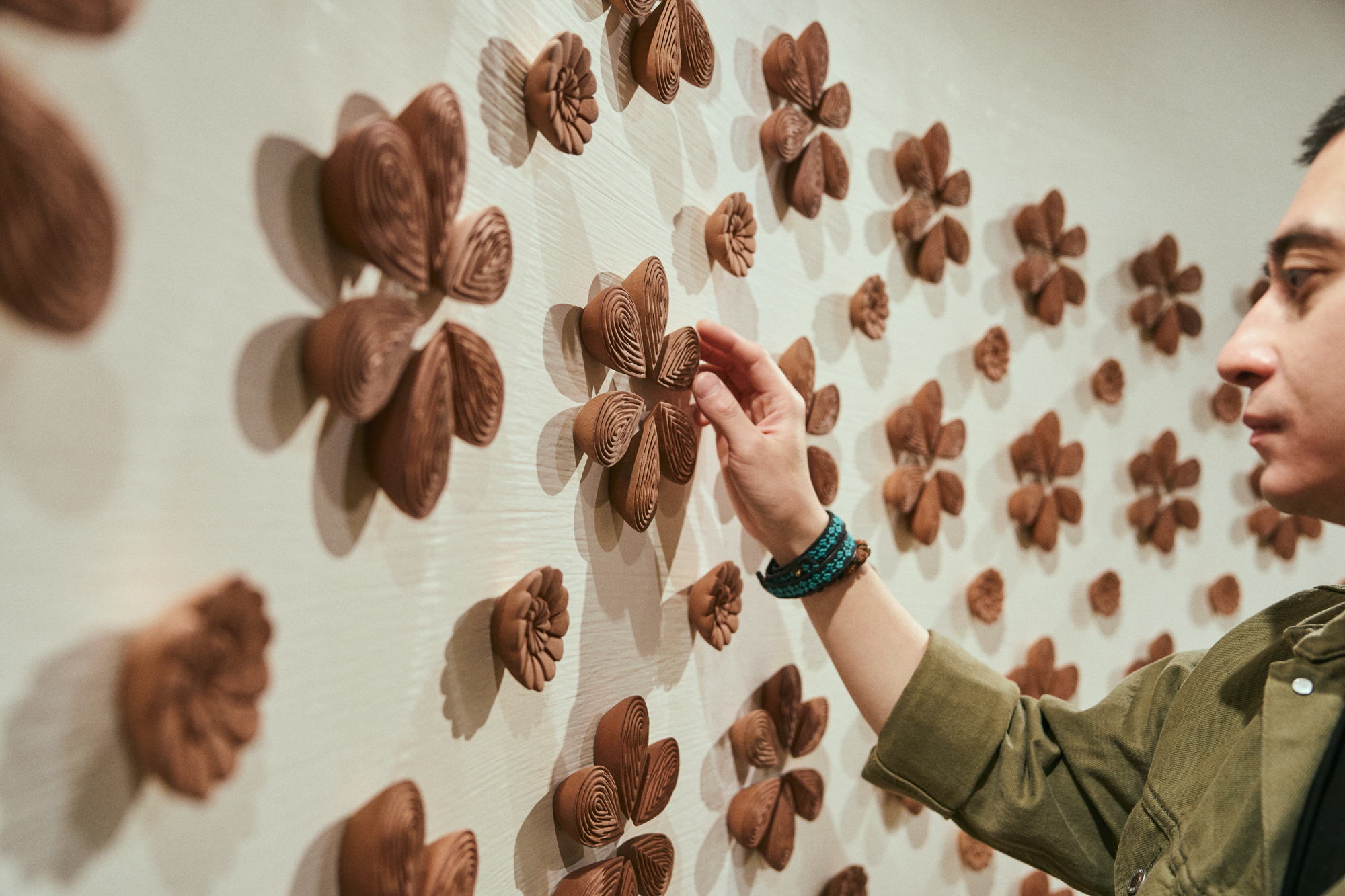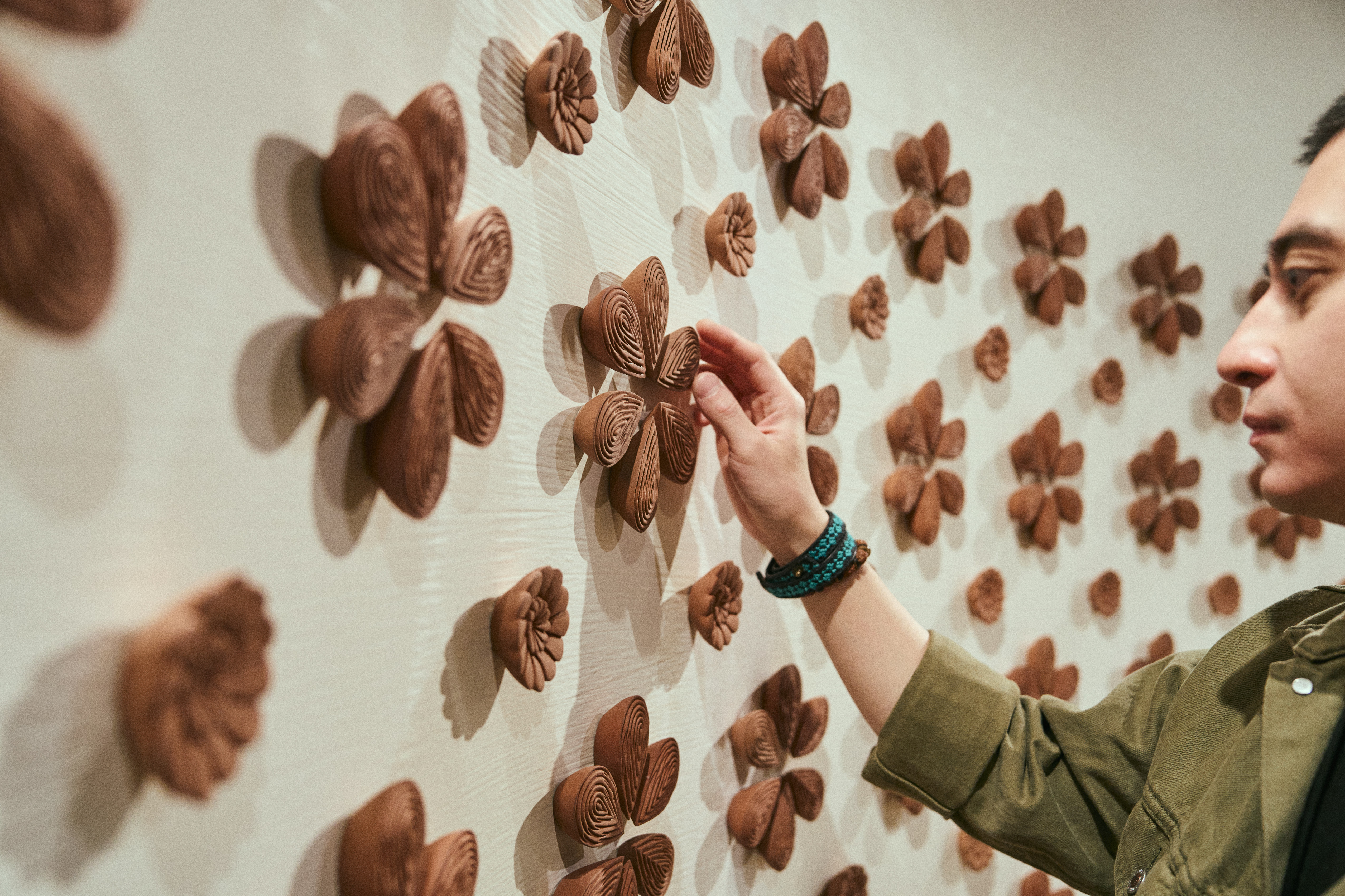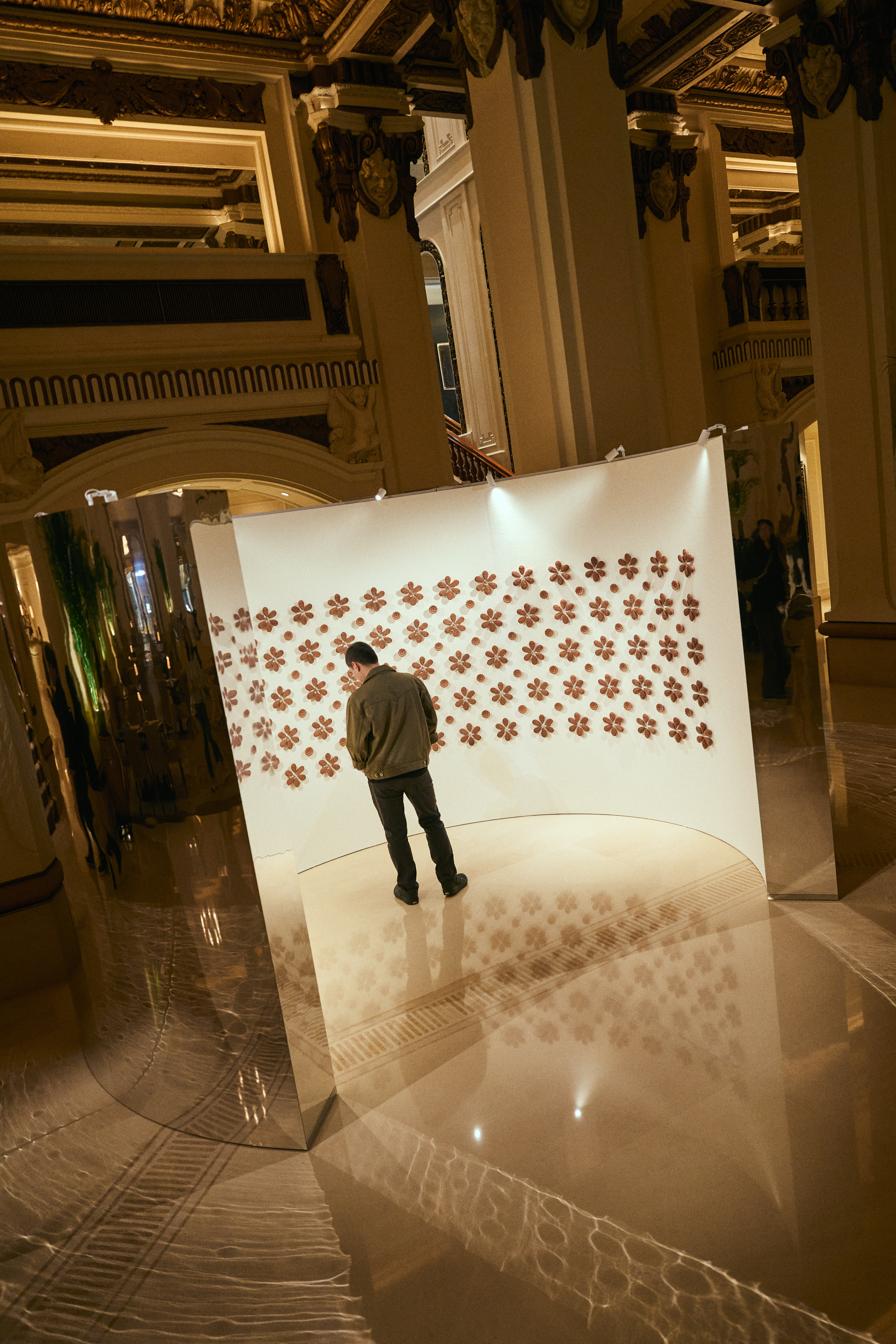 En The Lobby, la instalación Metamorphic Modulation, de Albert Yonathan Setyawan, envuelve al espectador en una estructura envolvente que invita a la contemplación. Compuesta por más de 700 piezas de cerámica modeladas a mano, la obra explora la repetición, la percepción y la ambigüedad formal, evocando simultáneamente formas orgánicas como hojas y flores.